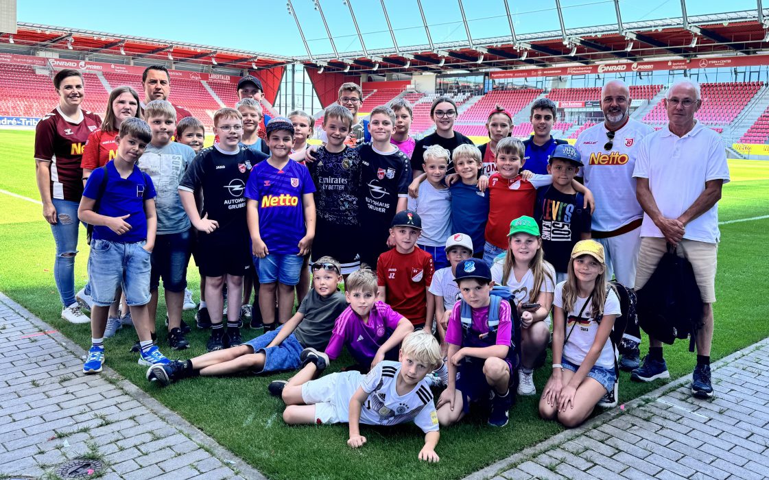 Die Regensburger Arena öffnet auch in den Sommerferien ihre Türen für ein besonderes Ferienprogramm. Am 19. August 2025 startete ein Bus mit Kindern und ein paar Eltern in Richtung Regensburg, um hinter die Kulissen des SSV Jahn Regensburg zu gucken.